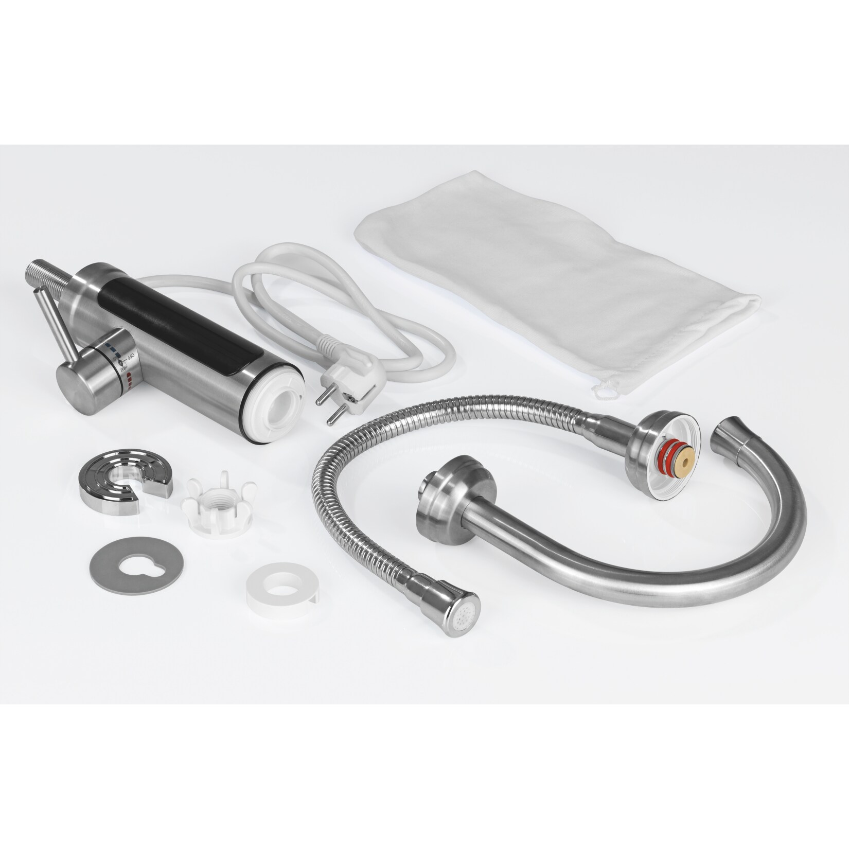 edelstahl 2 horst. maxxmee warm kaltwasserarmatur edelstahl 3300w chrom schwarz inkl 2 aufsatze online kaufen bei netto